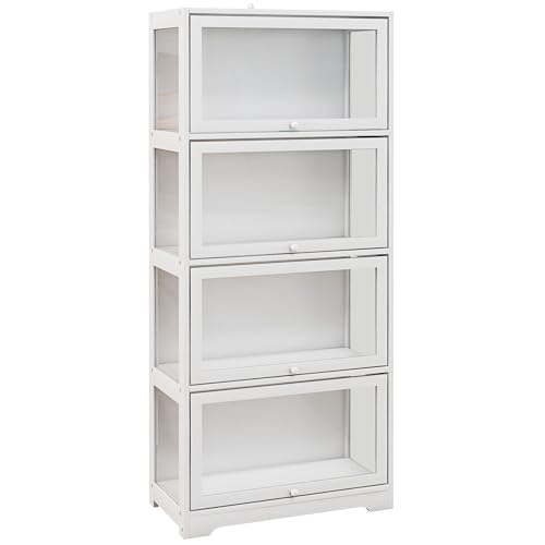 HOMCOM Vitrine pour Collection Buffet Salon Meuble de Rangement à 4 Niveaux avec Portes à abattant, pour Salon Bureau Chambre, 59 x 30 x 139 cm, Blanc