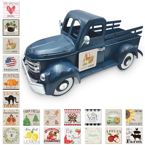 Teeloray Deco Noel, Décoration de Jardin de Voiture, 34cm Pot de Fleurs en Métal avec 20 Aimants Saisonniers pour la Maison, Décoration de Table, Balcon, Cuisine, Vitrine de la Terrasse, Bleu