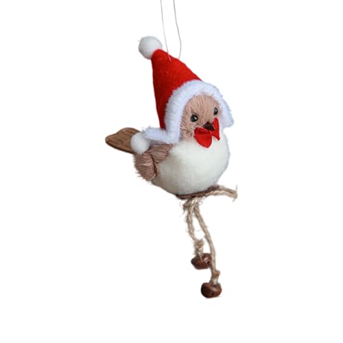 YROHGKPN Oiseau en peluche à suspendre pour décoration de vacances, pendentif en mousse réaliste, écharpe rouge, bonnet, sapin de Noël, vitrine, oiseau de Noël