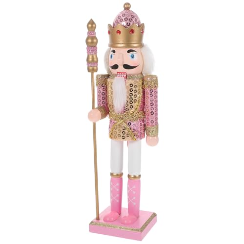 jojofuny Casse-Noisette en Bois Peint la Main, Grand Ornement Décoratif Rose Paillettes, Figurine Soldat pour Décoration Intérieure Festive de Noël et Vitrine, Accessoire de Fête Noël