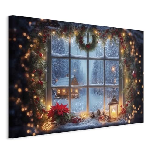 decomonkey Impression sur Toile vitrine de Noël 120 x 80 cm 1 Pièce - Tableau Décoration Appartement Cadre en Bois Photo Déco Cadeaux Fenêtre Noël Hiver
