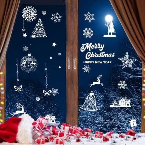 Svanco Décoration Noël Sticker Autocollants Fenêtre Blanc Sapin Noel Renne PVC Flocon de Neige Sticker Amovible Réutilisable Autocollants pour Porte Vitrine Verre Déco Noel Fête