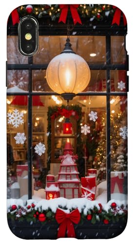 vitrine de Noël Hiver Confortable esthétique Vintage Girly Coque pour iPhone XS Max