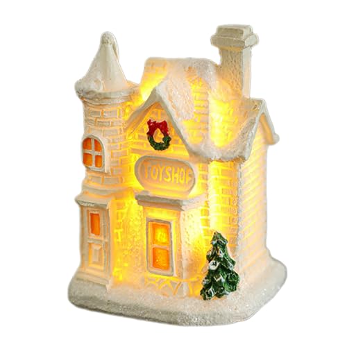 Maisons lumineuses de Noël | Maison en résine avec lumière chaude, décoration de bâtiment de collection pour fenêtre, vitrine, appartement, étagère, fête d'hiver