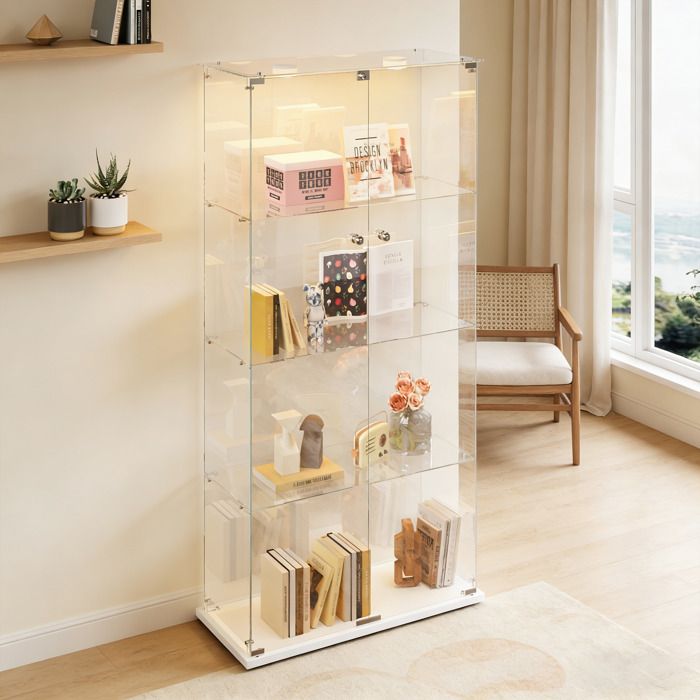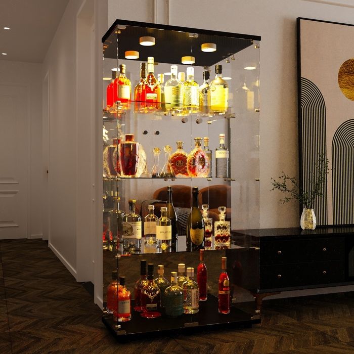 Vitrines en verre pour collection-Meuble de rangement salon avec barre lumineuse-L74 x P36 x H155 cm