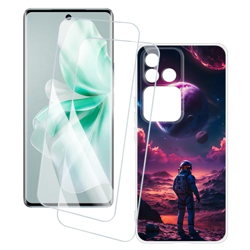 OAGELIM 2 Pack Protège-Écran + Coque Compatible avec Vivo V30 SE 5G (6.67 Pouce) Coque Impression Artistique Personnalisée et Film Verre Trempé (Astronaute)
