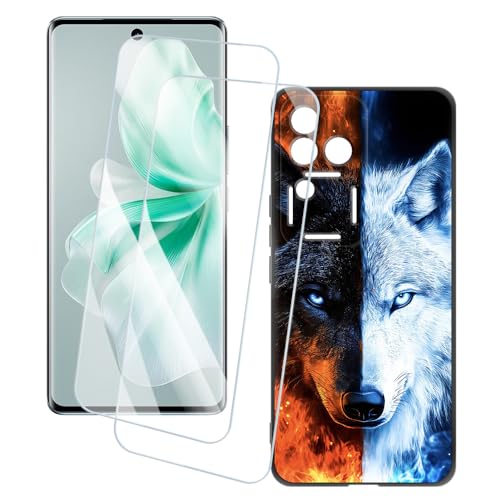 OAGELIM 2 Pack Protège-Écran + Coque Compatible avec Vivo V30 SE 5G (6.67 Pouce) Coque Impression Artistique Personnalisée et Film Verre Trempé (Loup 2)