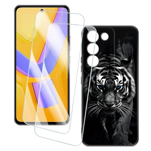 OAGELIM 2 Pack Protège-Écran + Coque Compatible avec Vivo V30 SE 5G (6.67 Pouce) Coque Impression Artistique Personnalisée et Film Verre Trempé (Tigre)