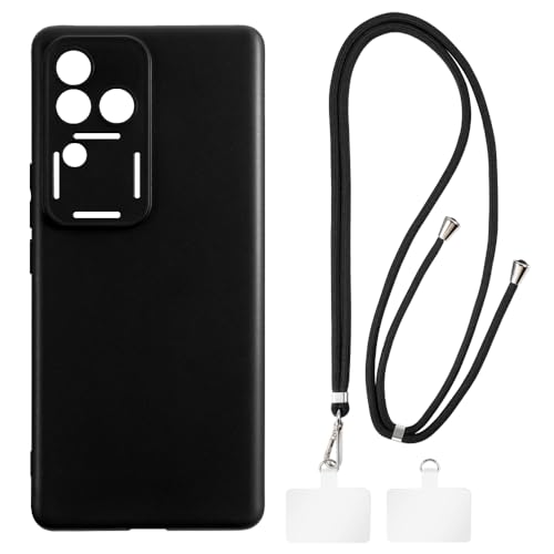 Shantime Coque et Lanière Bandoulière Compatible avec Vivo V30 Pro 5G Coque de Téléphone et Sangle de Cou Réglable avec Boucles Métalliques et 2 Patchs(Noir + Noir)
