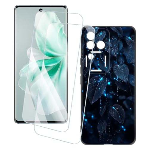 OAGELIM 2 Pack Protège-Écran + Coque Compatible avec Vivo V30 SE 5G (6.67 Pouce) Coque Impression Artistique Personnalisée et Film Verre Trempé (Feuilles)