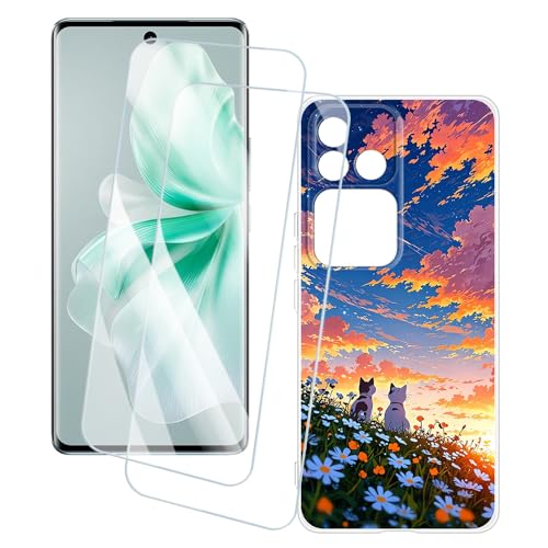 OAGELIM 2 Pack Protège-Écran + Coque Compatible avec Vivo V30 SE 5G (6.67 Pouce) Coque Impression Artistique Personnalisée et Film Verre Trempé (Clair)