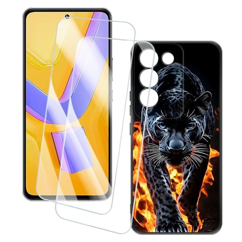 OAGELIM 2 Pack Protège-Écran + Coque Compatible avec Vivo V30 Lite 4G (6.67 Pouce) Coque Impression Artistique Personnalisée et Film Verre Trempé (Guépard)