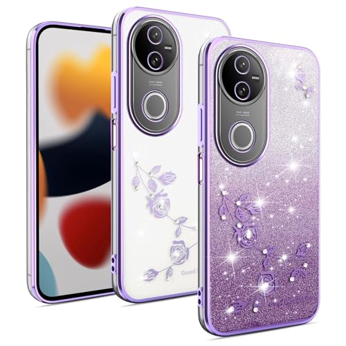 XINYEXIN Coque Brillante pour Vivo V50 5G, Étui Transparent à Paillettes Bling, Housse Ultra-Fine Antichoc pour Femmes et Filles - Violet