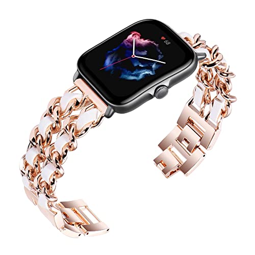 PaceBid 20mm Diamant Bracelet Compatible avec Garmin Vivoactive 5 /Vivomove Trend/Venu Sq 2/Venu Sq 2 music/Venu 2 Plus, Acier Inoxydable Métal, Femmes Bracelets Garmin Forerunner 245/645 -Or rose