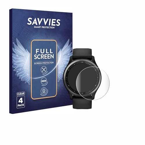 savvies 4 Pièces Full-Screen Ecran Protection pour Garmin Vivomove Sport Full Cover Film Protection 3D Curved [Couverture Complète, Transparente]