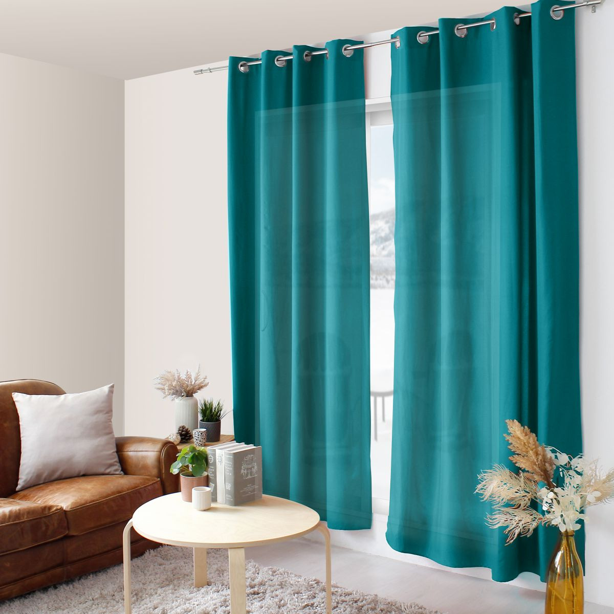 Rideau Voilage à Œillets "Zoé" 140x240cm Bleu Canard
