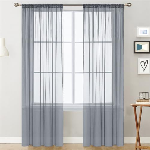 MRTREES Rideaux Voilage Gris Salon Moderne Transparent à Oeillets, Voilages Intérieurs pour Fenetre Chambre Adulte Salle à Manger Baie Vitrée, 140x210 CM, 2 Pièces