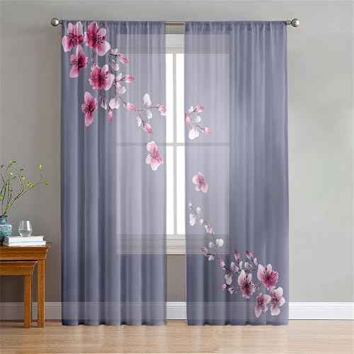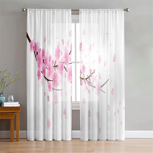 Surwin Rideau Voilage Impression 3D Sakura, Rideaux Lot de 2, Voiles Intérieurs Voilage Fenetre, Rideaux Voilage Moderne pour Décorer Salon,Chambre,Cuisine,Fenêtre (Sakura 3,107x244cm)