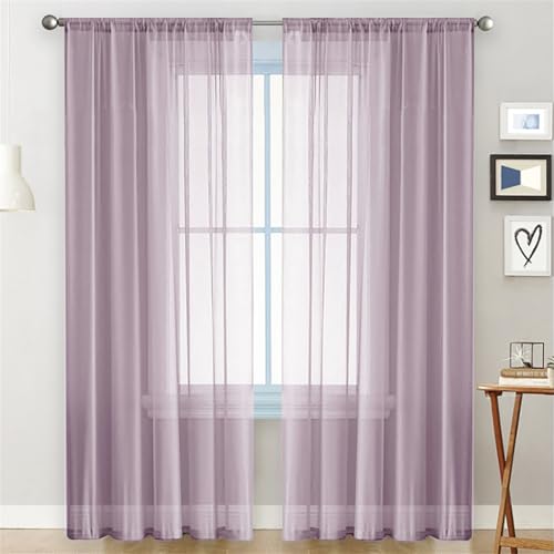 Surwin Rideau Voilage Dentelle de Couleur Unie, Rideaux Lot de 2, Voiles Intérieurs Voilage Fenetre, Rideaux Voilage Moderne pour Décorer Salon,Chambre,Cuisine,Fenêtre (Violet1,100x100cm)