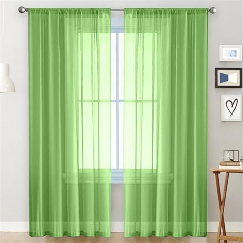 Surwin Rideau Voilage Couleur Unie Japonaise, Rideaux Lot de 2, Voiles Intérieurs Voilage Fenetre, Rideaux Voilage Moderne pour Décorer Salon,Chambre,Cuisine,Fenêtre (Vert 2,100x130cm)