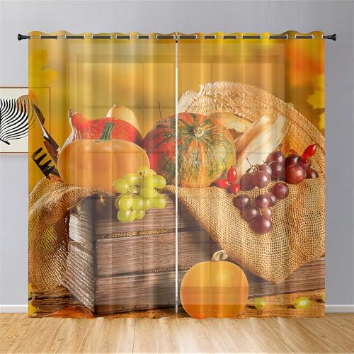 Mateju Lot de 2 Rideau Voilage, Transparent 3D Citrouille Rideaux Voilage Moderne pour Cuisine, Salon et Chambre (Légumes et Fruits,55 x 95 cm)