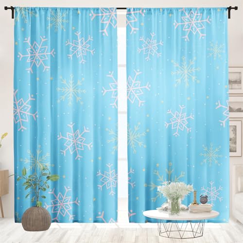 Surwin Rideau Voilage Noël d'hiver en 3D, Rideaux Lot de 2,Voiles Intérieurs Voilage Fenetre, Rideaux Voilage Moderne pour Décorer Salon,Chambre,Cuisine,Fenêtre (Bleu,132x244cm)