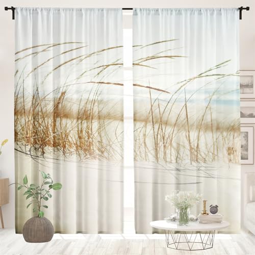 Surwin Rideau Voilage Magnifique de Paysage, Rideaux Lot de 2,Voiles Intérieurs Voilage Fenetre, Rideaux Voilage Moderne pour Décorer Salon,Chambre,Cuisine,Fenêtre (Plage,107x213cm)