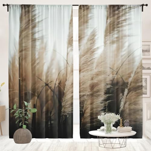 Surwin Rideau Voilage Magnifique de Paysage, Rideaux Lot de 2,Voiles Intérieurs Voilage Fenetre, Rideaux Voilage Moderne pour Décorer Salon,Chambre,Cuisine,Fenêtre (Plantes,140x244cm)