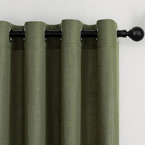 Rideau Vert Olive 140x280cm Rideaux Voilage Salon Moderne Opaque Lumière Douce Translucides et Draperies Intérieurs à Oeillets Décorati Chambre Adult Enfant Fenêtre Coucher Dressing Boheme 2pcs