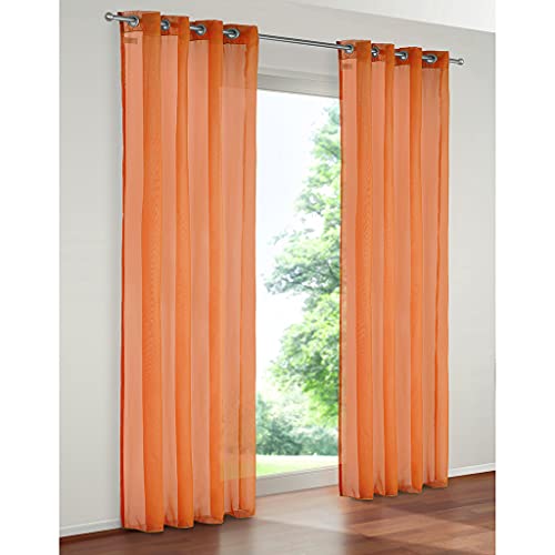 SMITHOOM Lot de 2 Rideaux Voilage à Oeillets Classique Couleur Unie Translucide Voilage pour Salon Décor Chambre Enfant Balcon Cuisine, Orange, 140x175cm