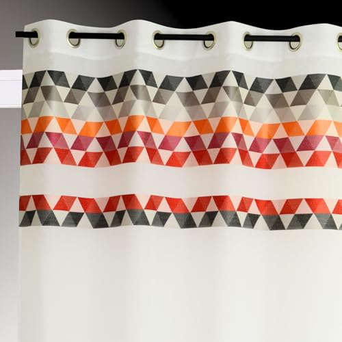 Homemaison - Voilage en Étamine à Parement Haut Triangle - Polyester - Motifs Géométriques - Prêt-à-Poser avec Oeillets Ronds Argentés - Protection Intérieure - 140 x 240 cm - Orange