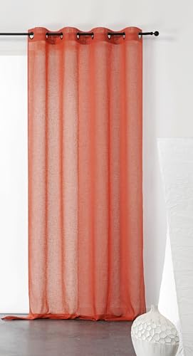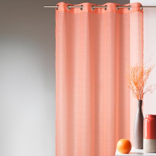 LINDER Voilage Doux et Souple - Style Chaleureux - Finition Œillets Canon de Fusil - Coloris Orange Corail - Dimensions 140x240cm - 85% Polyester 15% Coton - Collection Tenessee