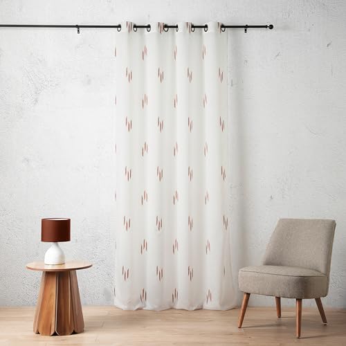 LINDER Voilage au Motif Fil coupé - Style Ikat - Coloris Orange Terracotta - Finition œillets Canon de Fusil - 140x260cm - 100% Polyester - Collection Arena