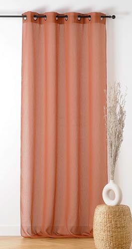 Homemaison - Voilage en Étamine Fantaisie Doupion - Polyester - Oeillets Argents avec Bande de Renfort - Léger et Discret - Salon, Chambre, Cuisine - 140 x 240 cm - Orange Corail