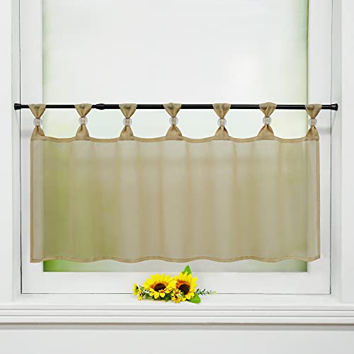 ACMHNC Rideau Court Petite Fenetre, Demi Rideau Voilage Rideau Brise- Bise pour Le café-Restaurant Cuisine Porte de Placard évier 1pcs,Beige,W x H 140x100cm