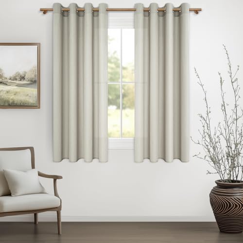 MRTREES Rideau Voilage Lin Naturel Court de Cuisine Voilage Petite Fenetre 140x145 CM, Rideaux Voilages Intérieurs Courts Translucide à Oeillets pour Salon Chambre Baie Vitrée, 2 Pièces