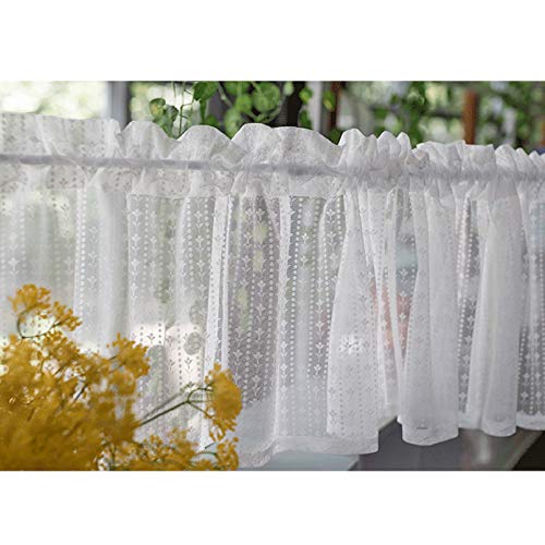 HongYa Brise Bise Transparent avec Dentelle Découpé Passe Tringle Rideaux pour Cuisine Court Voilage de Petite Fenêtre Classique Blanc H/L 120/150cm