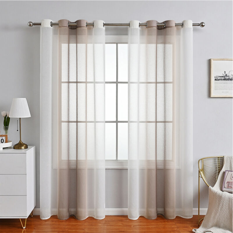 Rideaux Voilage à Rayures, Voilages Intérieurs avec Oeillets, Beaux Voile Rideau Voilage Fenetre Chambre, Lot de 2 Transparent Rideaux Salon - brun