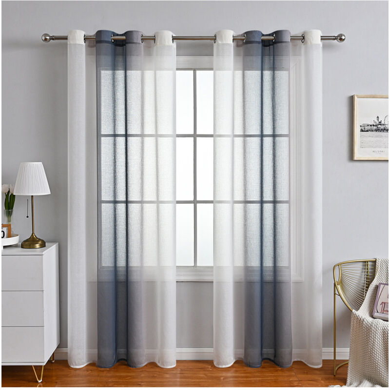 TOPICK Lot de 2 Rideau Voilage Bleus Fenetre Transparent Couleur Pure Décoration d'Intérieur Salon Maison Chambre Cuisine Léger Lavable Romantique 140 x 225 cm