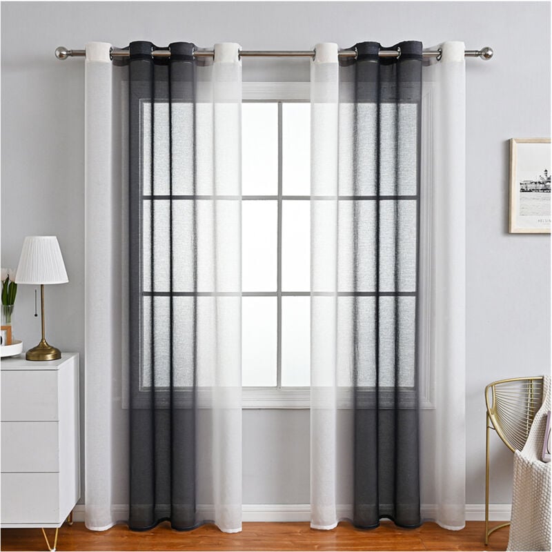 Rideaux Voilage à Rayures, Voilages Intérieurs avec Oeillets, Beaux Voile Rideau Voilage Fenetre Chambre, Lot de 2 Transparent Rideaux Salon - noir