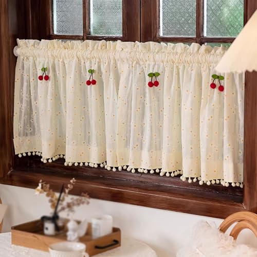 Lot de 2 voilages courts en tulle pour chambre d'enfant et salon Motif étoiles et lune Doré 129,5 cm