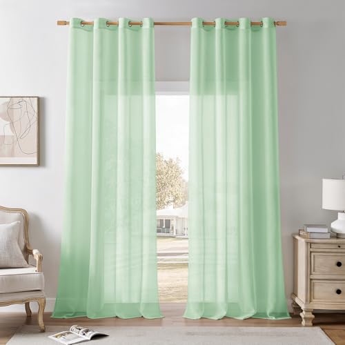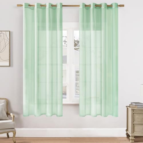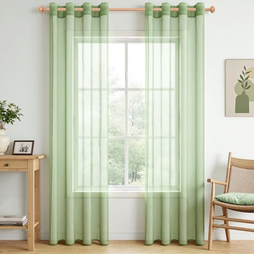 CUTEWIND Rideau Salon Moderne Lot de 2 Rideaux Voilages Intérieurs Rideau Voile Vert Transparent à Oeillets, Rideaux Voilage pour Fenetre Chambre Adulte Salle a Manger, 140x245 CM