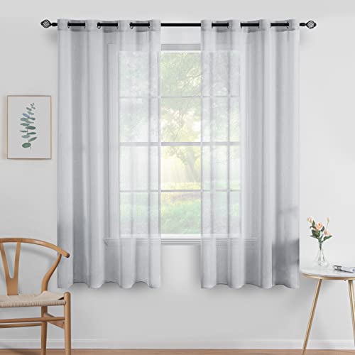 NICETOWN Rideaux Voilages Blanc Lot de 2, 140x125cm (Largeur x Hauteur) à Oeillets, Semi-Transparent Lumineux pour Cuisine Chambre Maison, Décoration Fenêtre