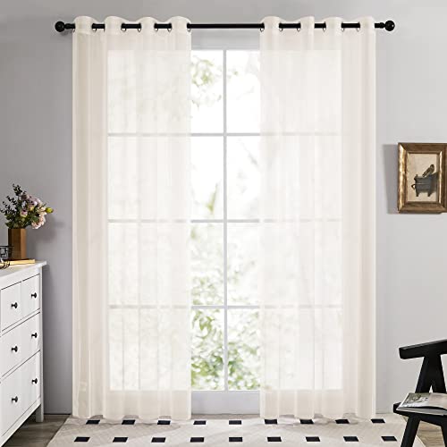 NICETOWN Rideaux Voilages Blanc Lot de 2, 140x245cm (Largeur x Hauteur) à Oeillets, Semi-Transparent Lumineux pour Porte Salon Chambre Maison, Décoration Fenêtre