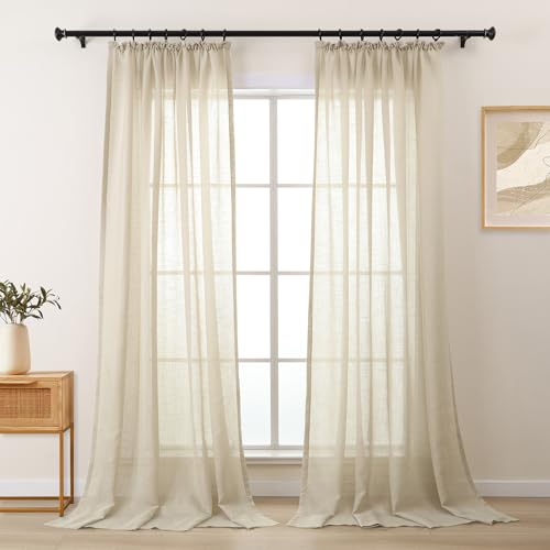 L.Z.E Rideau Voilage Beige Rideaux Voilages pour Salon Chambre Beige Aspect Lin Galon Frontier Rideaux et Draperies 225 cm Longue Lot de 2 Semi Transparent & Léger