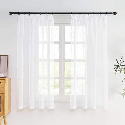 NICETOWN Rideaux Voilages Blanc Lot de 2, 140x145cm (Largeur x Hauteur) Galon Fronceur, Semi-Transparent Lumineux pour Cuisine Chambre Maison, Décoration Fenêtre