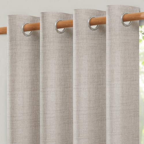 Topfinel Rideaux Voilages Naturel Lin Coton Beige Translucides Beige Rideau Fenetre Cuisine Moderne Rideau 140x260cm Décoration Salon Chambre Adult Fille Draperies Dressing Intérieurs à Oeillets 2pc