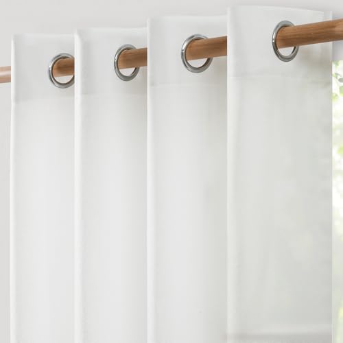 NICETOWN Rideaux Voilages Blanc Lot de 2, 140x215cm (Largeur x Hauteur) à Oeillets, Semi-Transparent Lumineux pour Porte Salon Chambre Maison, Décoration Fenêtre
