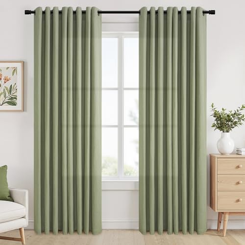 Topfinel Vert Sauge Rideau Voilage pour Dressing Rideaux Voilages Décoratif Salon Moderne Fenetre Chambre Cuisine Effet Lin et Coton Anti Mouches Intérieur Semi Occultant à Oeillets 140x260cm LxH 2pcs