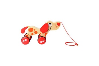 Jouets de voiture d'animaux à tirer en bois poussée chien âgé 1 an pour tout-petits - Rouge
